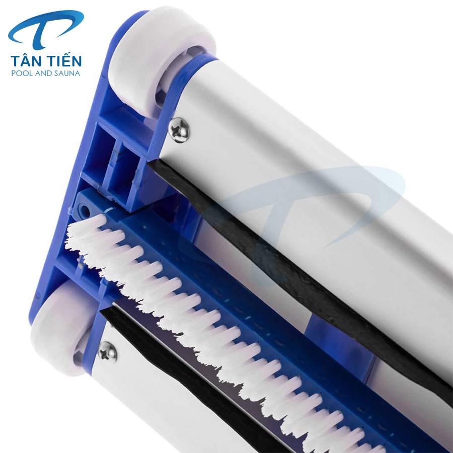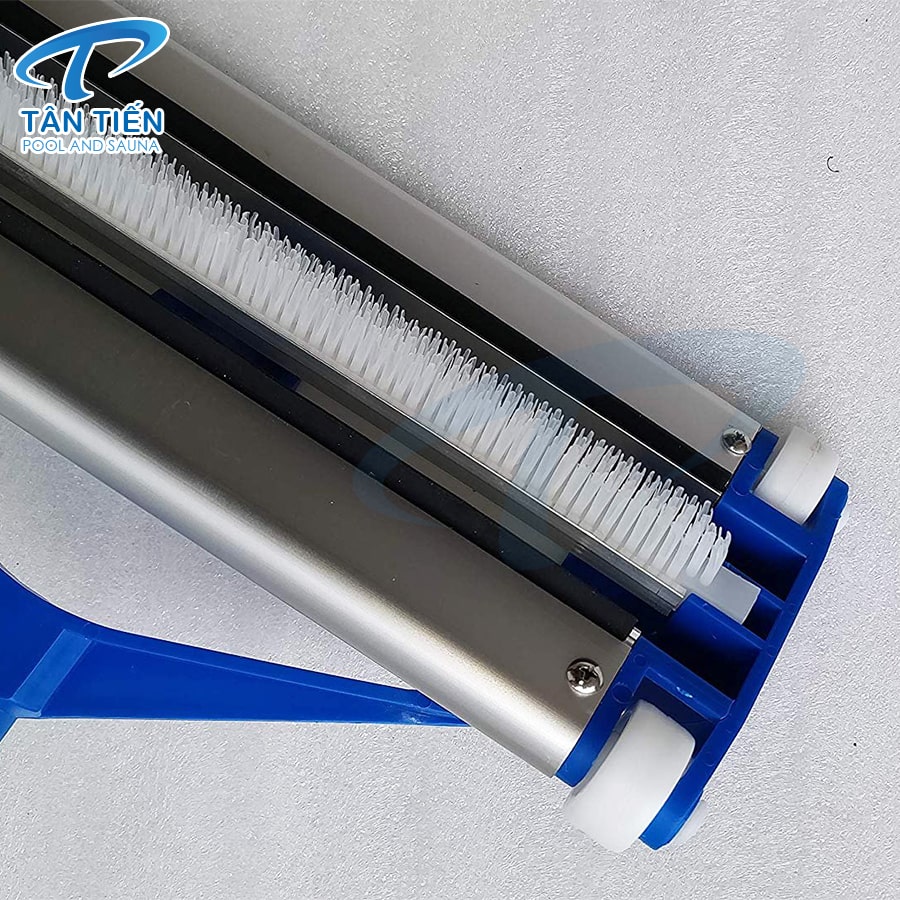 Mặt dưới của bàn hút nhôm là 3 hàng lông chà cọ, chất liệu Polypropylene. Lớp lông chà được xếp dày dặn, đầu chà đan sát. Đầu cọ có độ mềm, dai mang tới hiệu quả chà sạch tuyệt vời mà không làm xước hay ảnh hưởng tới cấu trúc bề mặt của bể bơi.
