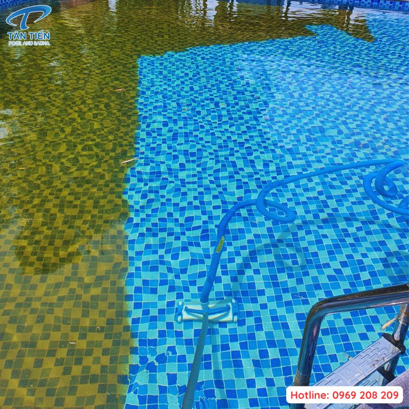 Sau thời gian trên, tắt hệ thống lọc để mặt nước yên tĩnh. Chờ đợi các cặn bẩn sinh ra từ phản ứng trên sẽ lắng xuống đáy bể. Sau thời gian chờ từ 1-2h, bạn quan sát độ trong của nước. Nếu nước bể bơi ở tầng trên đã đạt độ trong tối ưu thì chuyển qua khâu hút vệ sinh đáy.