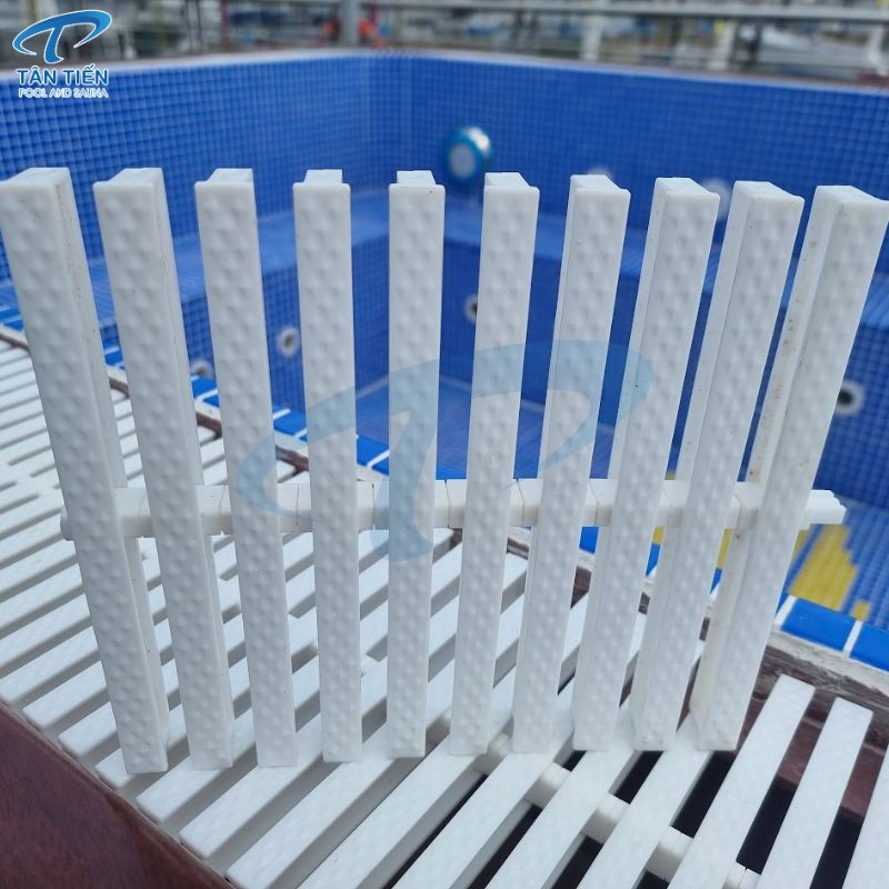 Thanh thoát tràn tràn bể bơi là phụ kiện được lắp đặt ở phía trên của rãnh cân bằng với các bể bơi xây bằng gạch, bể bơi bê tông… Phụ kiện có chức năng thu gom nước tràn, vương vãi từ bể bơi trong quá trình sử dụng, đảm bảo khu vực bể bơi luôn khô ráo, không trơn trượt. Ngoài ra, thanh thoát tràn cũng có chức năng thu rác thải đường kính lớn, không xâm nhập vào hệ thống lọc nước bể bơi.