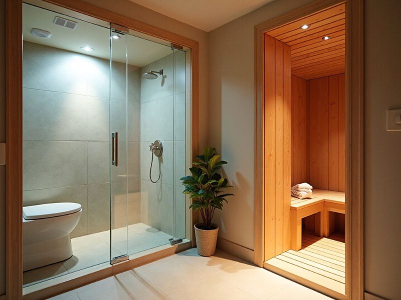 Tiện ích 2 trong 1 – Lắp đặt phòng xông hơi gia đình kết hợp với cabin tắm kính cường lực và sen tắm