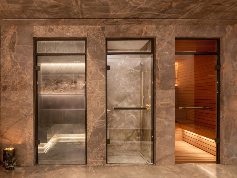 Một số phòng xông ướt kinh doanh với thể tích tối ưu, ốp lát gạch mosaic thẩm mỹ và dễ dàng vệ sinh