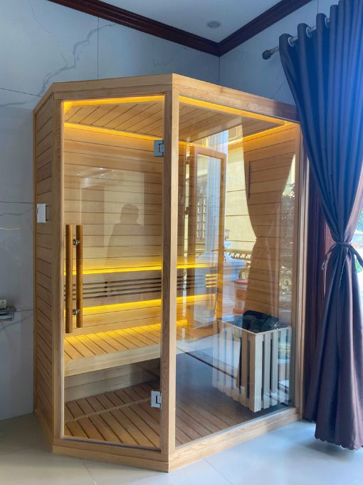 Khác với phòng xông hơi ướt, phòng xông hơi khô không sử dụng hơi nước mà tập trung vào nhiệt độ cao được duy trì bởi các thiết bị làm nóng và đá xông chuyên dụng. Nhiệt độ trong phòng có thể đạt tới 70 độ C, giúp kích thích đổ mồ hôi, thải độc tố, và cải thiện tuần hoàn máu. Đây là lựa chọn phổ biến tại các spa, phòng gym, khách sạn cao cấp và cả không gian gia đình.